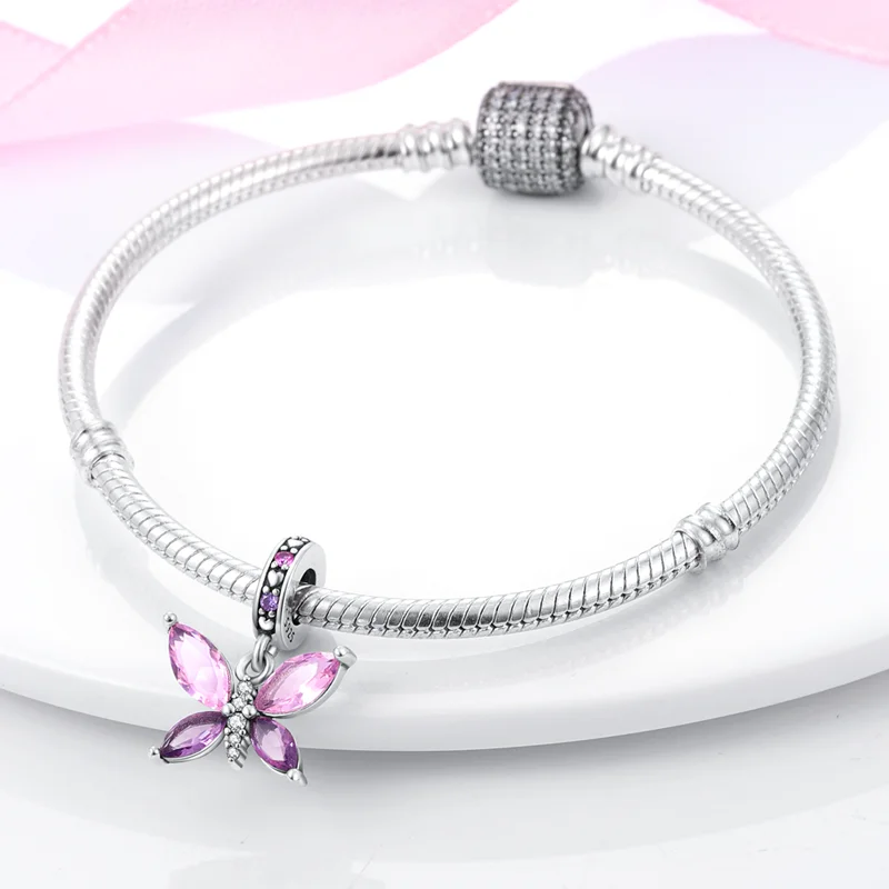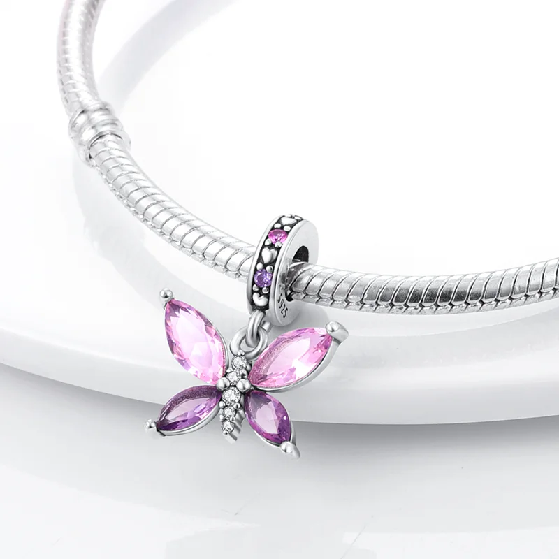 Original 925 Sterling Silver Butterfly Charms Beads Pendants for S925 Bracelet Necklace - Colorful DIY Birthday Jewelry