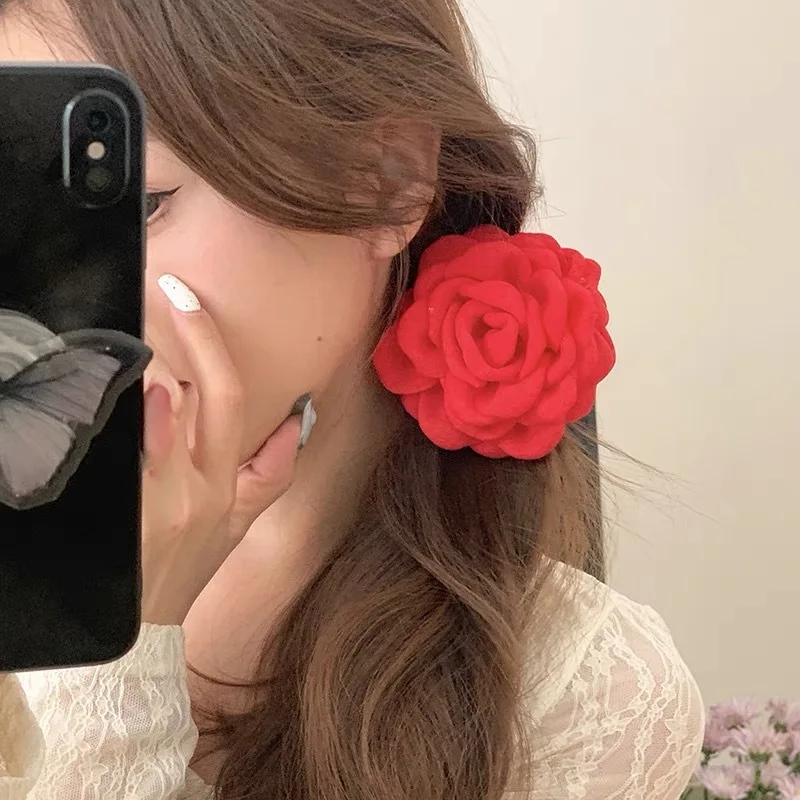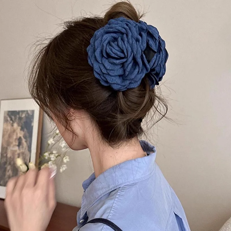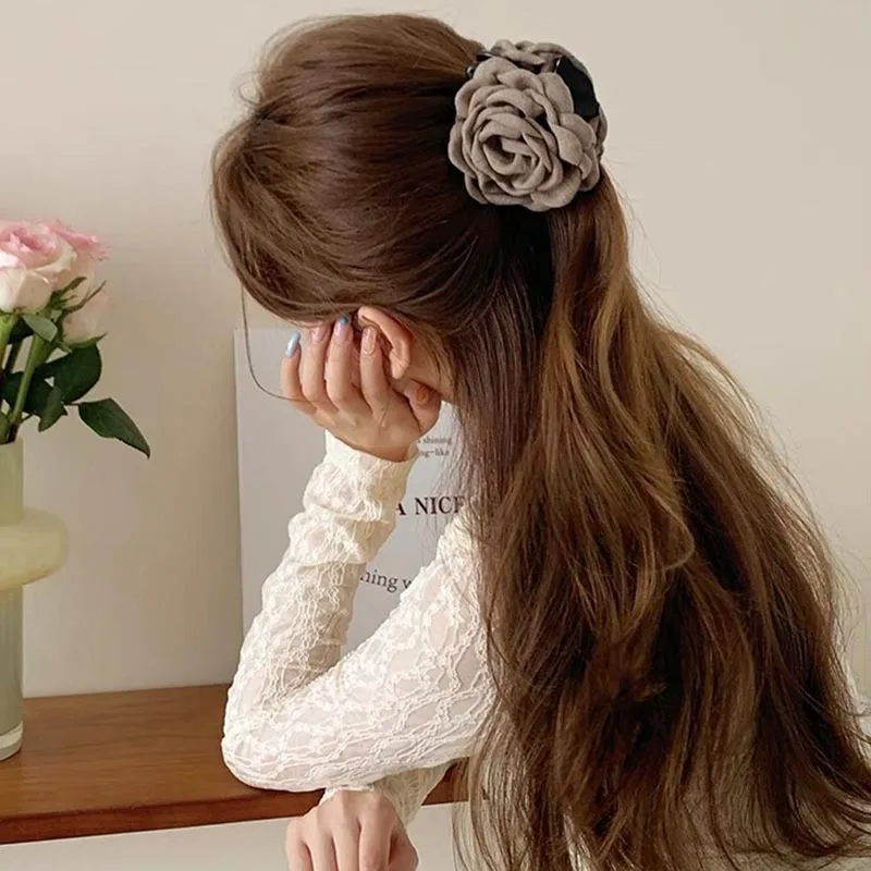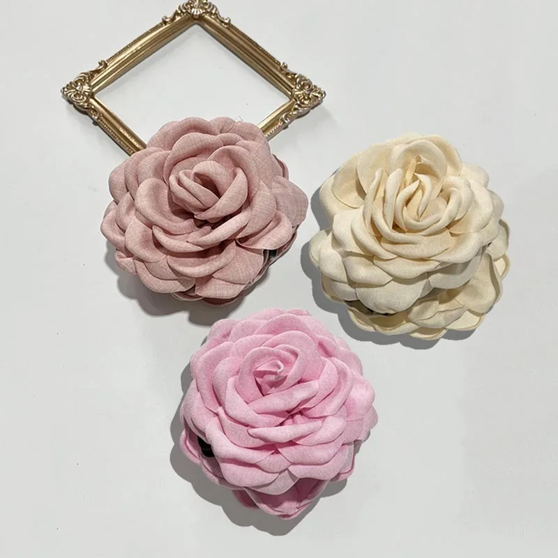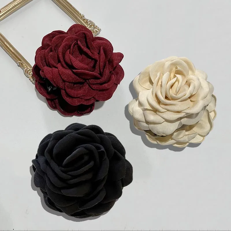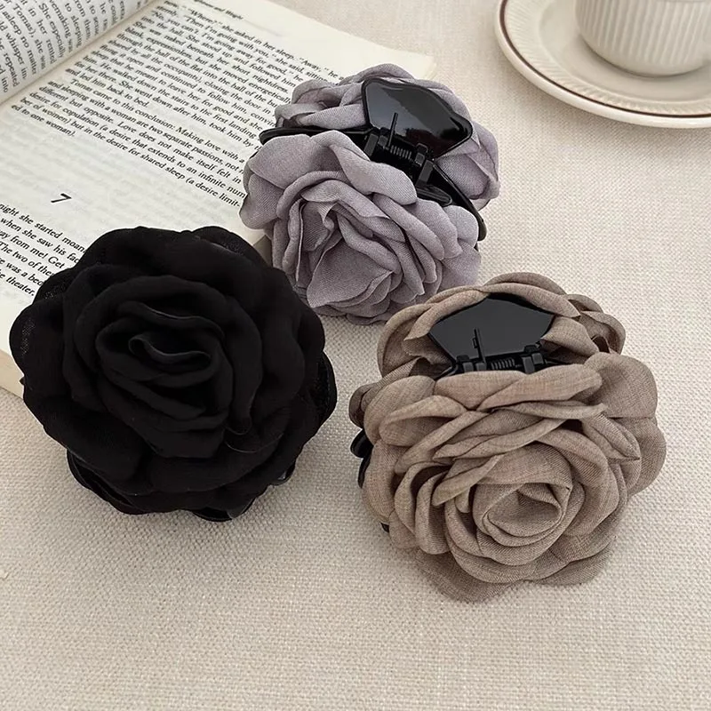 French Fabric Rose Hair Clips - Elegant Hair Claw Clips for Women and Girls, Stylish Barrette and Hair Accessories Gift