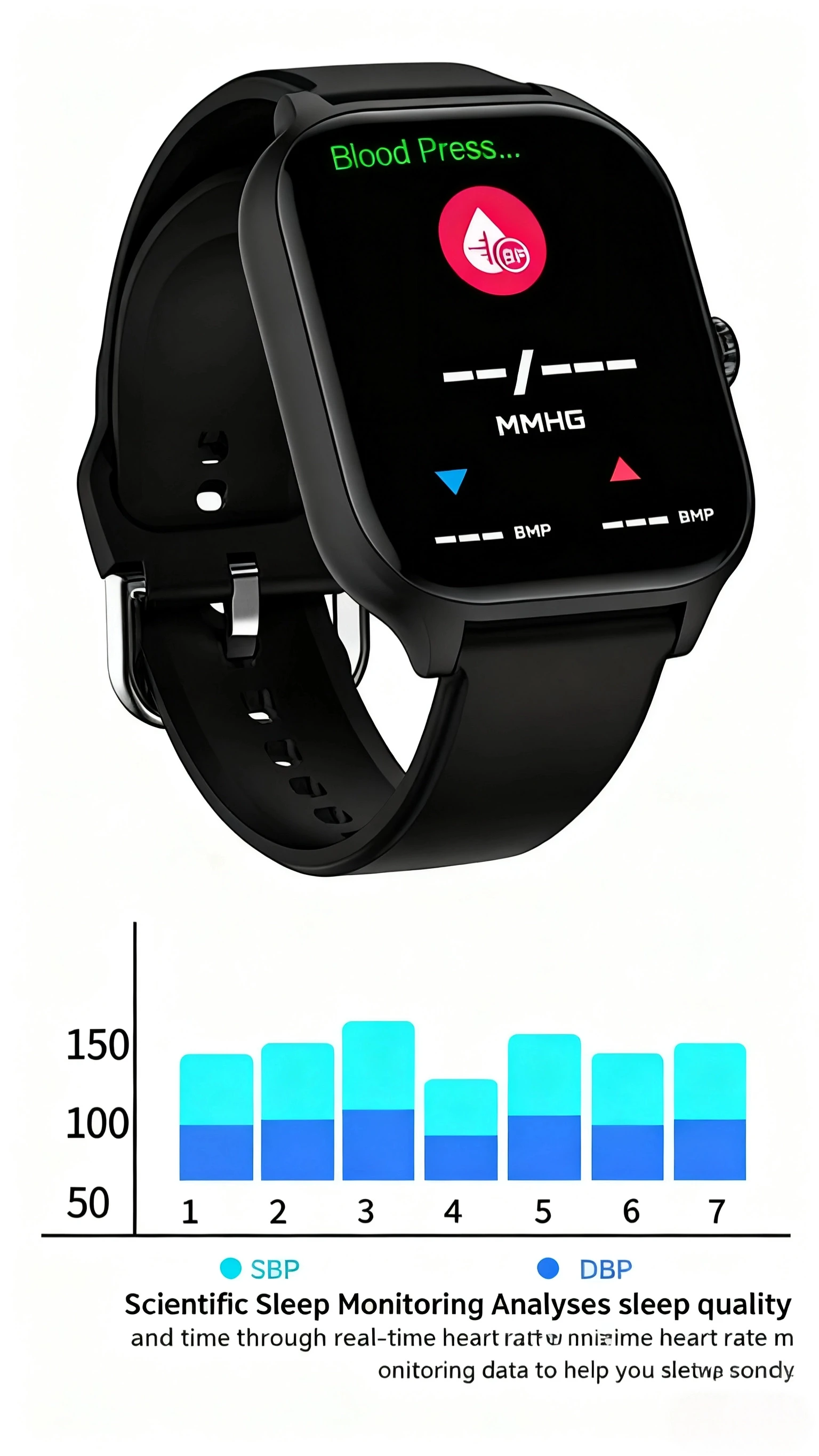 Blood pressure&blood oxygen monitoring: supports 24-hour blood pressure monitoring (displaying mmHg values, presenting changes in systolic blood pressure (SBP) and diastolic blood pressure (DBP) through bar charts), and can also monitor blood oxygen (SPO2) data to help real-time grasp health indicators;